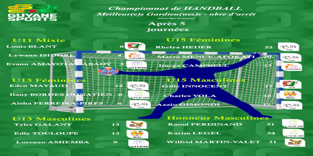Les meilleurs(es) Buteurs(ses) et Gardiens(nes) du Championnat de Handball de Guyane sont ici....